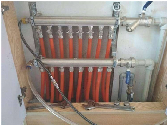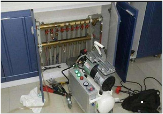 這種地暖清洗方法不需藥劑,不拆卸地暖管,清洗較徹底。其獨特的清洗原理可同時清洗地暖分集水器主管路及閥門,避免長期結垢導致閥門堵塞現(xiàn)象。這種清洗方法的不足之處在于,施工時受空間限制,特別是某些用戶的地暖分集水器安裝在隱蔽處,且分集水器兩端與墻壁距離過近,從而使施工更加困難。