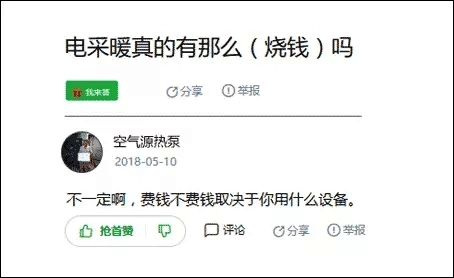 這是某論壇里一個(gè)關(guān)注度非常高的話題。在討論區(qū),有人這么回答:“不一定啊,費(fèi)錢(qián)不費(fèi)錢(qián)取決于你用什么設(shè)備。用費(fèi)電的設(shè)備當(dāng)然費(fèi)錢(qián),比燒煤還貴。用節(jié)能省電的設(shè)備當(dāng)然不費(fèi)錢(qián)。一方面在于熱轉(zhuǎn)化率,另一方面在于保溫。所以選擇比較好的設(shè)備和做好房屋保溫是很重要的”。