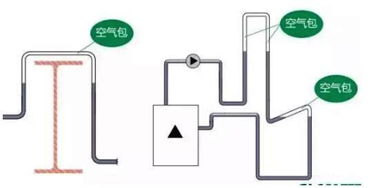 整個系統(tǒng)的主管道一定要平直,順?biāo)鞣较蚵杂猩掀伦詈,也就是說進(jìn)水管稍稍往上抬,回水管稍稍往下降,這樣可以方便管道中空氣的排放,而且主管道切不可走U型,會形成氣堵,及時用軟連接也不行。